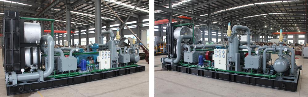 3、壓縮機主機及輔機等設備全部安裝在橇架上,運行平穩可靠,整體撬裝便于壓縮機的運輸與安裝。